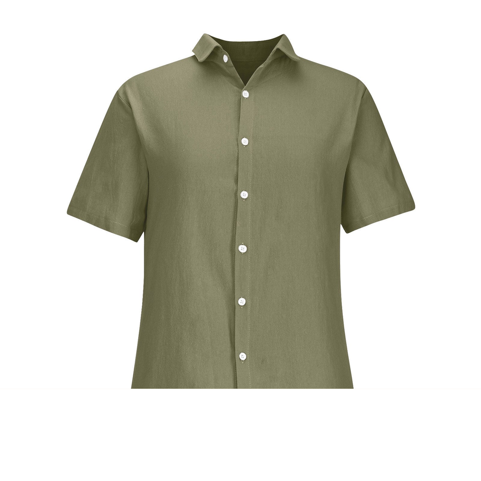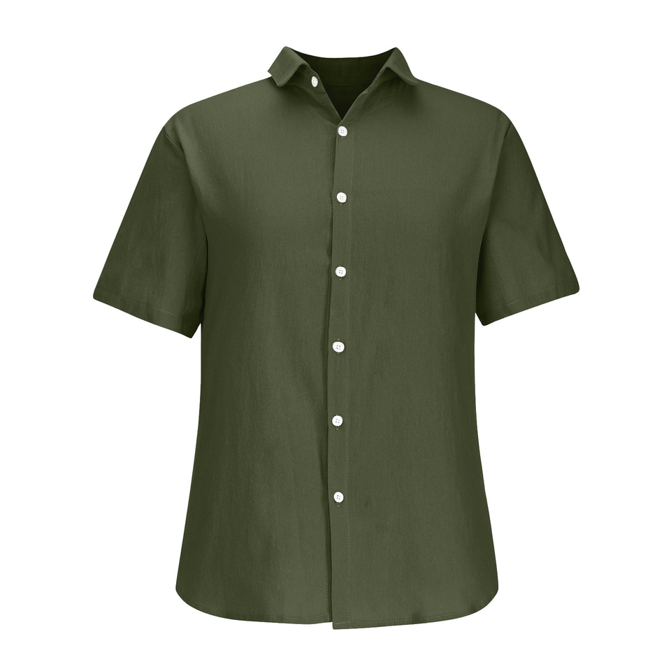 เสื้อเชิ้ตแขนสั้นสำหรับผู้ชายสีเขียวเข้มคอเสื้อเชิ๊ตทรงปกติใส่ได้100% ออกแบบโลโก้ได้ตามต้องการ