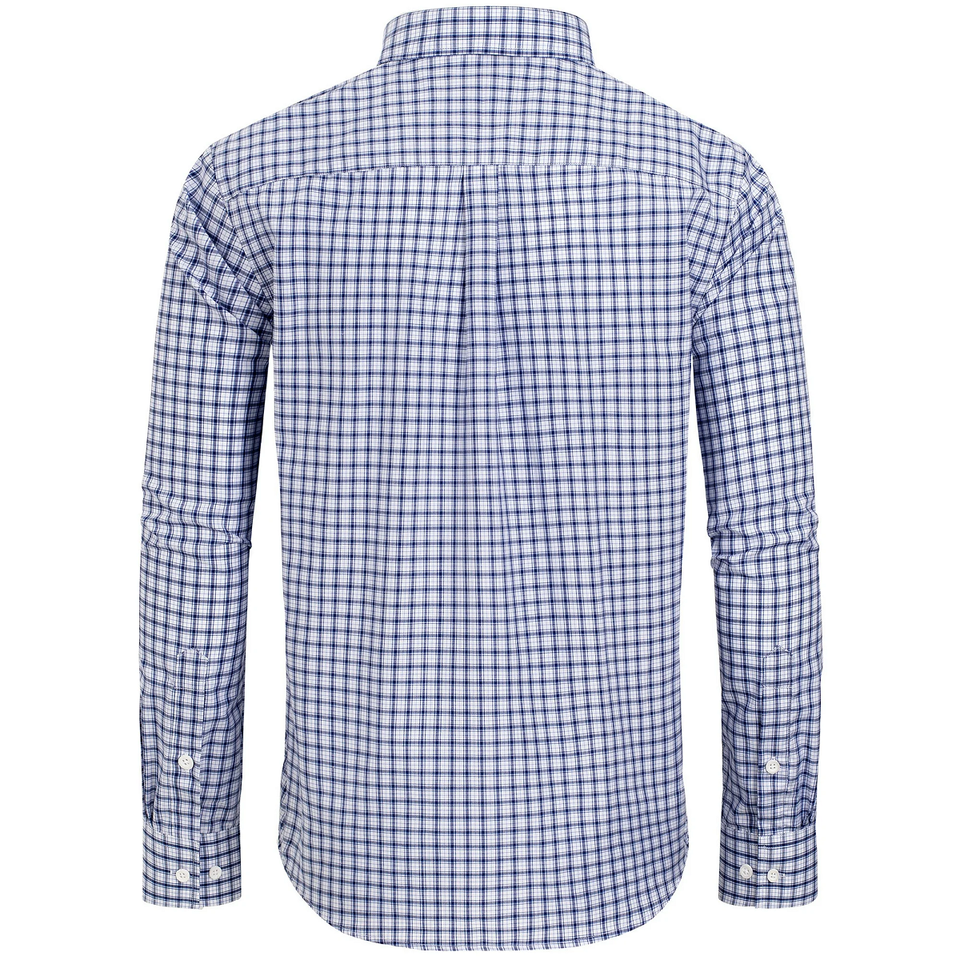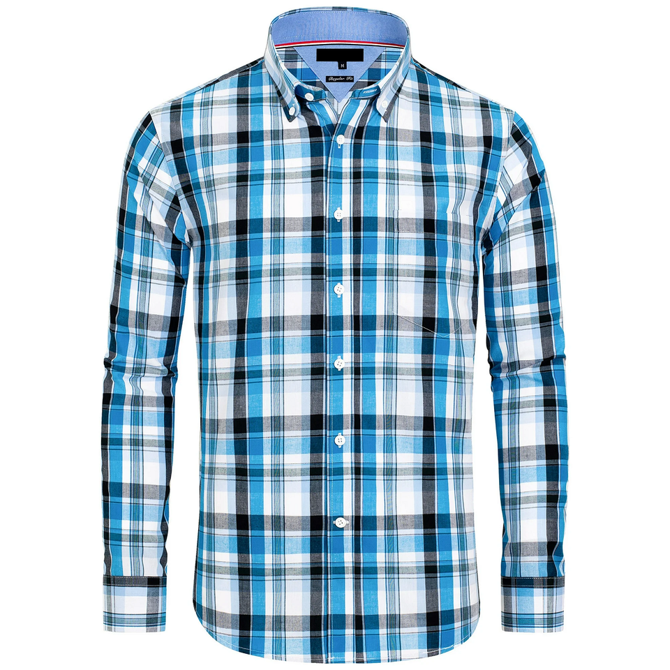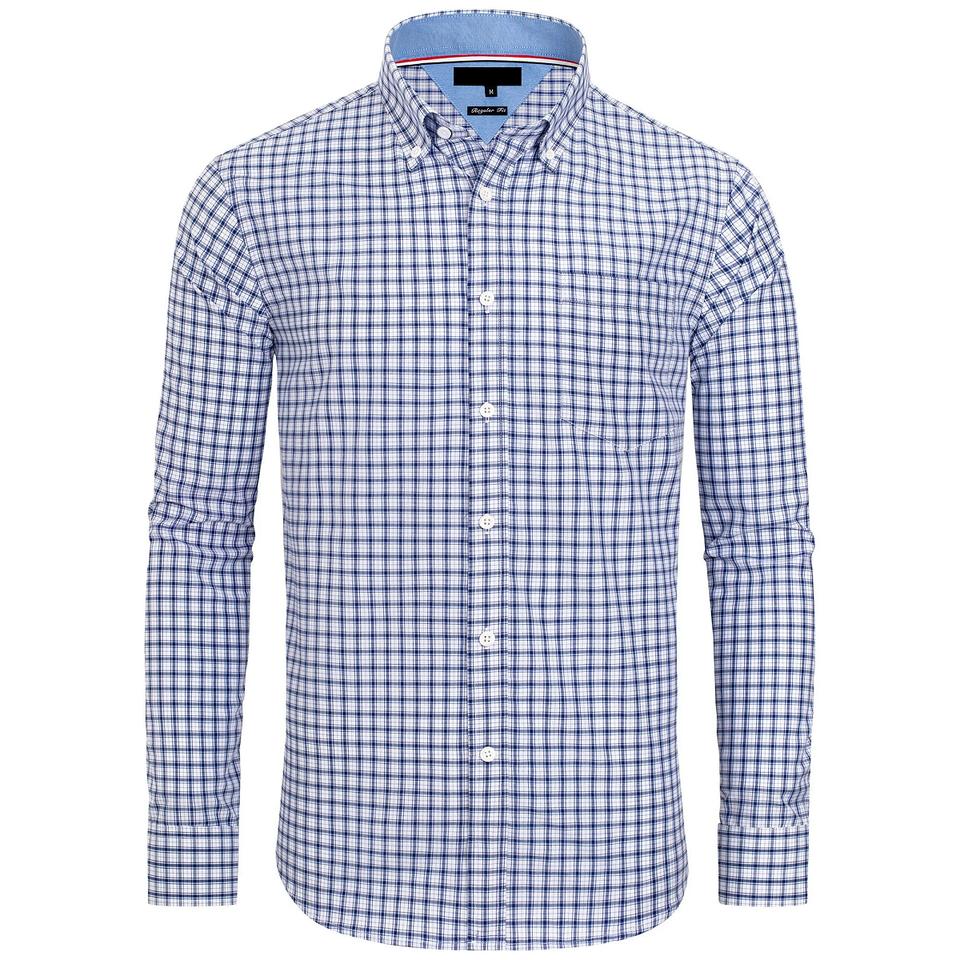 เสื้อเชิ้ตทรงพอดีตัวปกติของผู้ชาย100% พอดีตัวคอเสื้อสีตัดกันตรวจสอบแขนยาวกันยับ