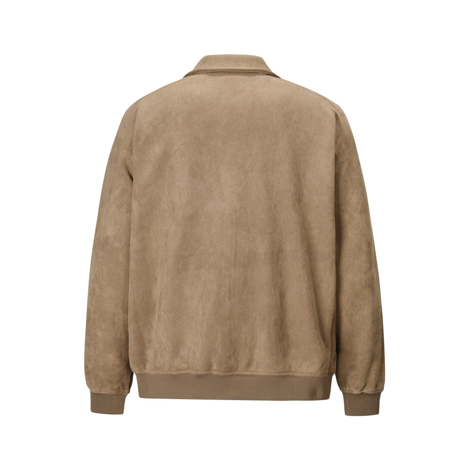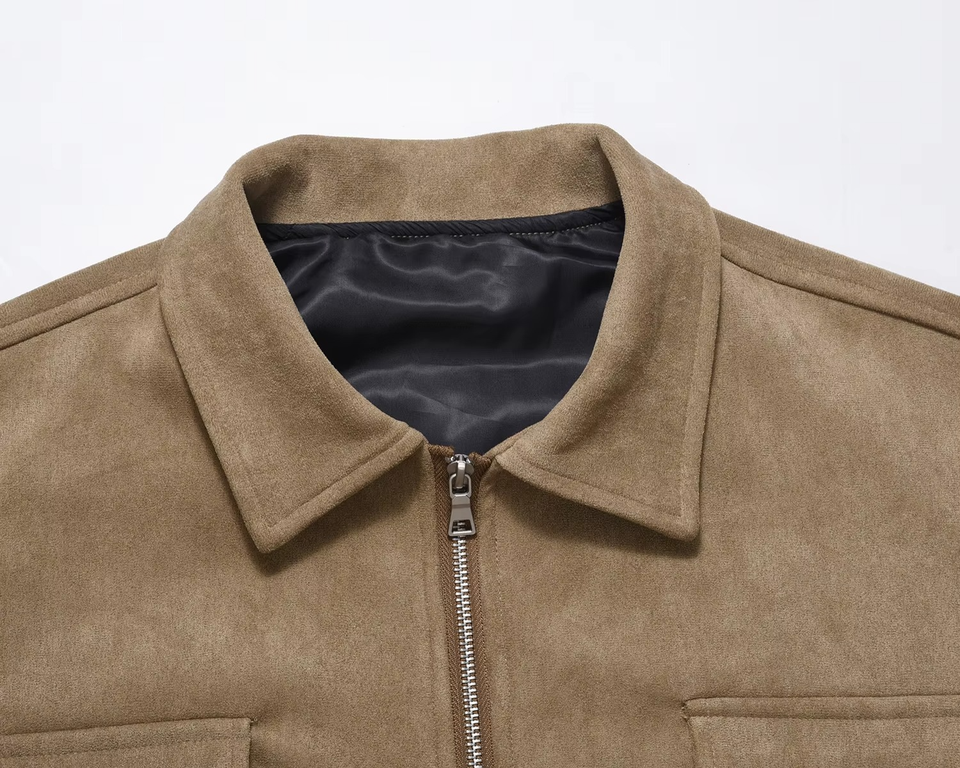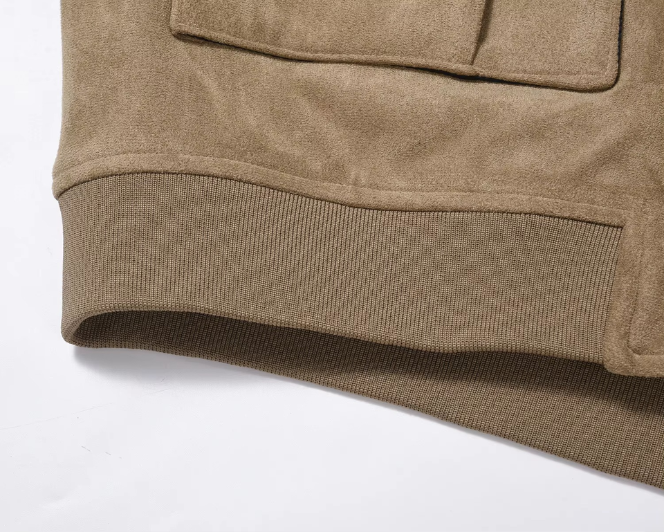 ออกแบบโลโก้ OEM ตามสั่ง เสื้อแจ็คเก็ตผู้ชายคุณภาพสูง ปกคอพับ มีกระเป๋า ซิปปิด แจ็คเก็ตหนังกลับ แจ็คเก็ตบอมเบอร์