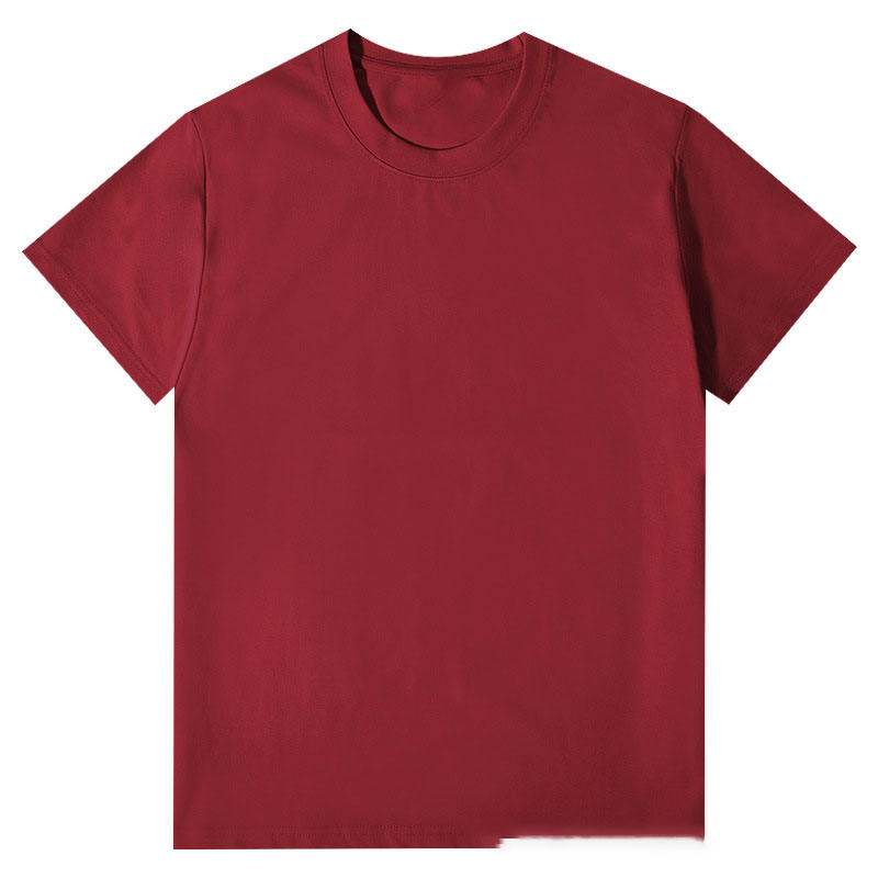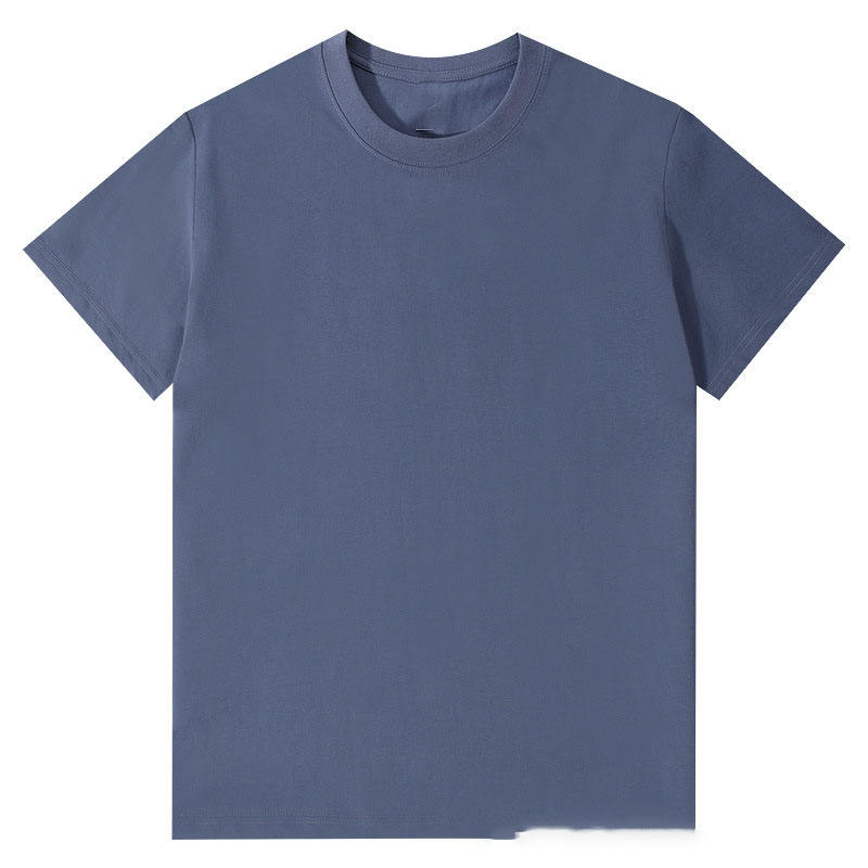 เสื้อยืดผู้ชายและผู้หญิงแบบถักน้ำหนัก 220 กรัม สำหรับฤดูร้อน ออกแบบลายปักพิมพ์โลโก้ตามสั่ง OEM สีพื้นเรียบง่าย คอไม่โปร่งแสง