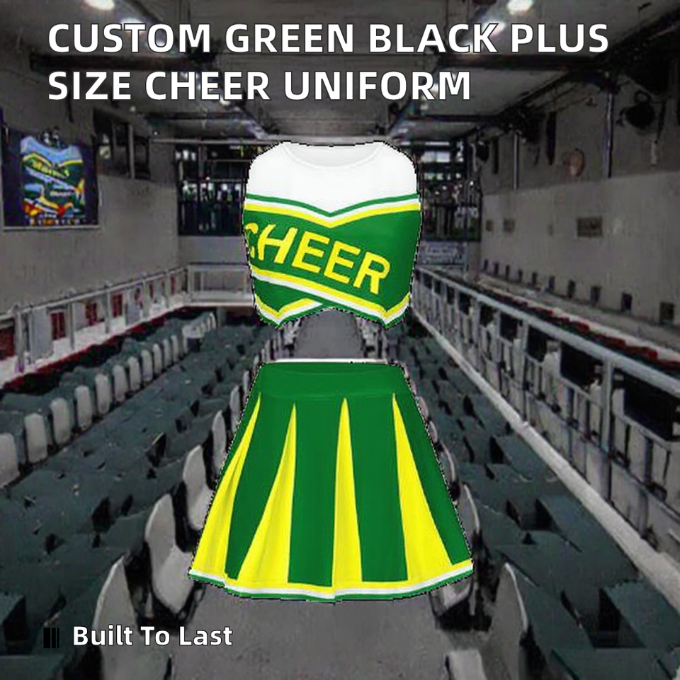 ชุดยูนิฟอร์มเชียร์ลีดเดอร์สีเขียวดำ ไซส์พลัส สำหรับเด็ก วัยรุ่น และผู้หญิง รับผลิตตามแบบ OEM พร้อมสกรีนโลโก้