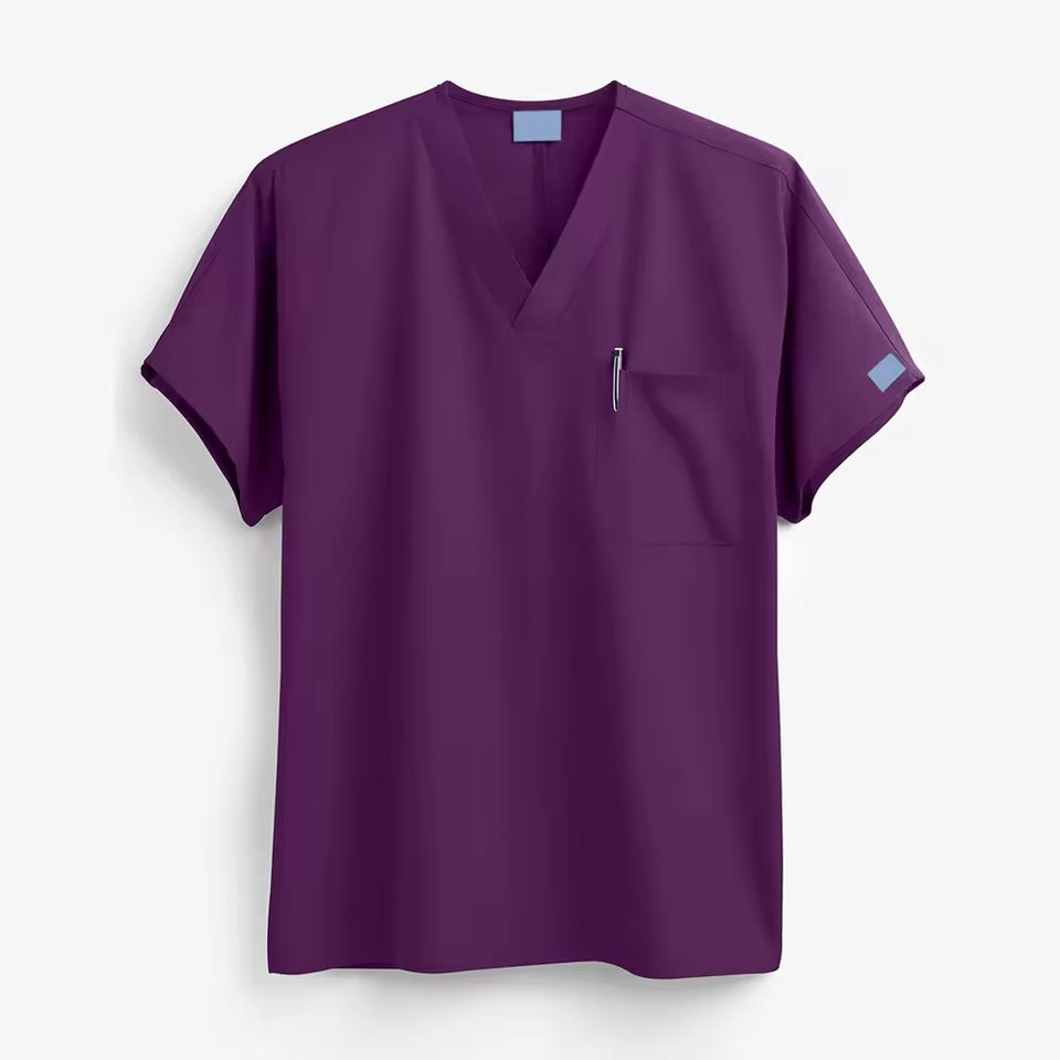เสื้อยูนิฟอร์มพยาบาลแขนสั้นผ้าเนื้อละเอียดสำหรับทุกเพศโลโก้ OEM ตามสั่ง