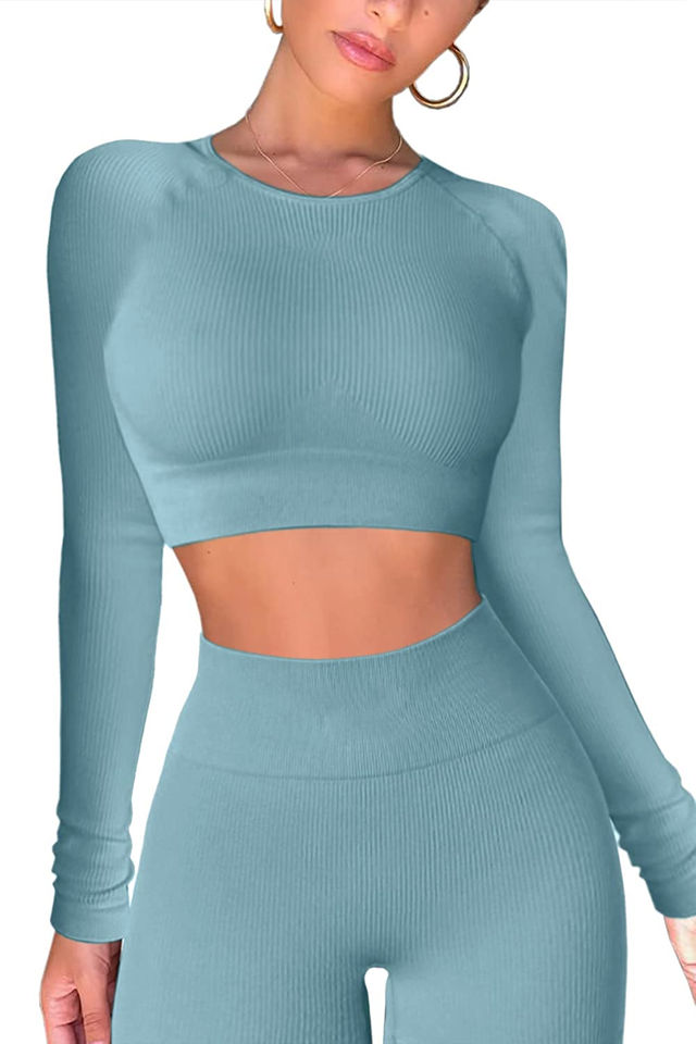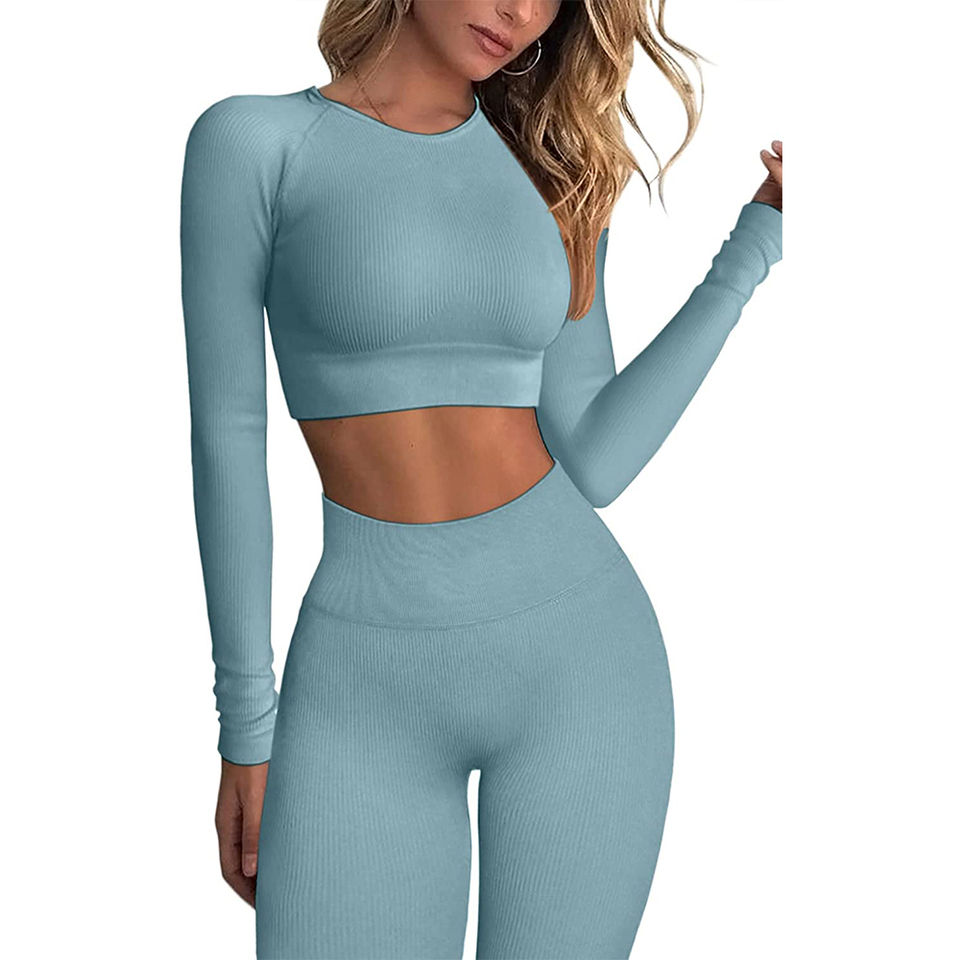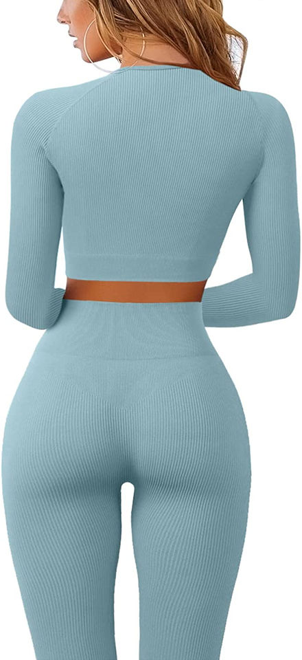 ชุดออกกำลังกายแบบสองชิ้น เสื้อครอปท็อปและเลกกิ้งผ้ายืดสูง พิมพ์โลโก้ OEM ได้ตามสั่ง สำหรับผู้หญิง ทรงเข้ารูป ถักทอแน่น สไตล์ฮิปฮอป ไซส์พลัส สำหรับฤดูหนาว