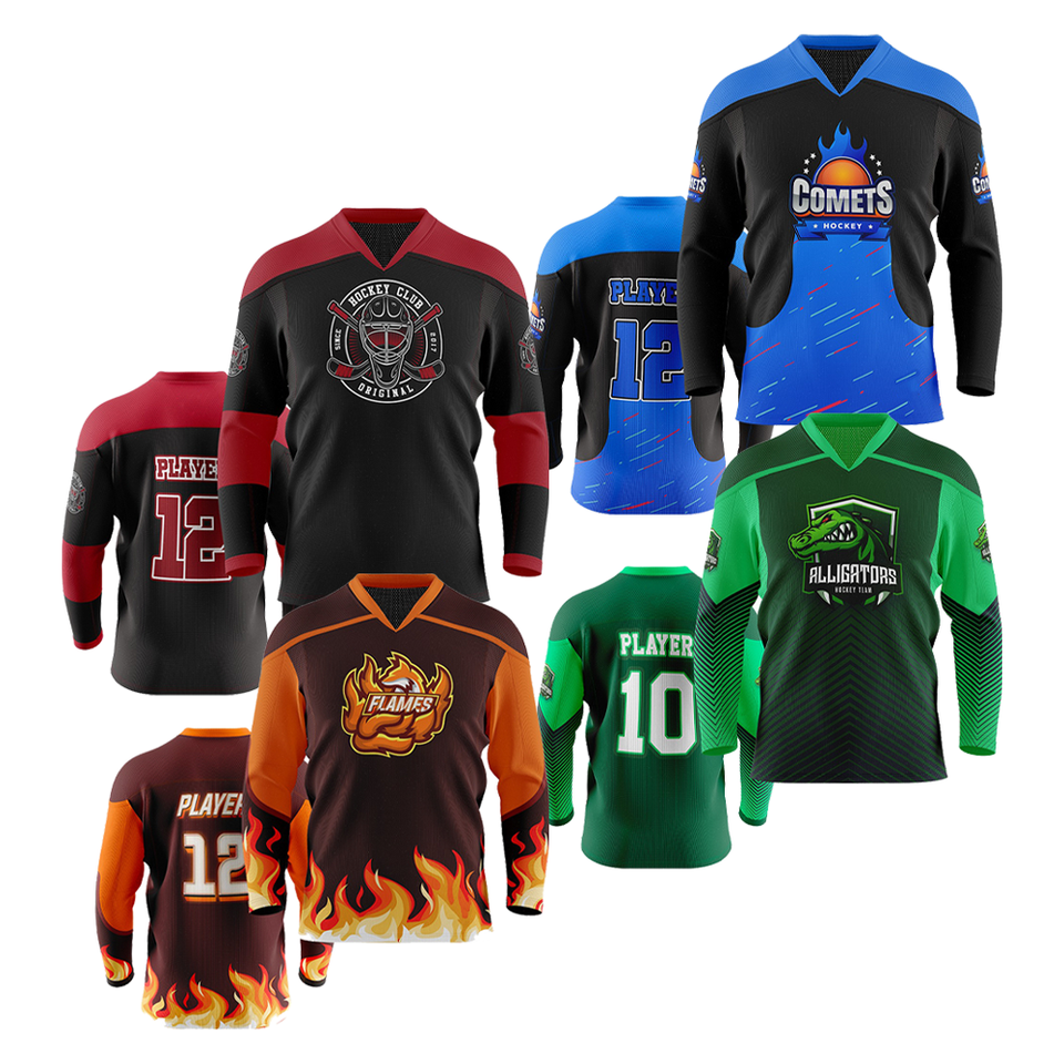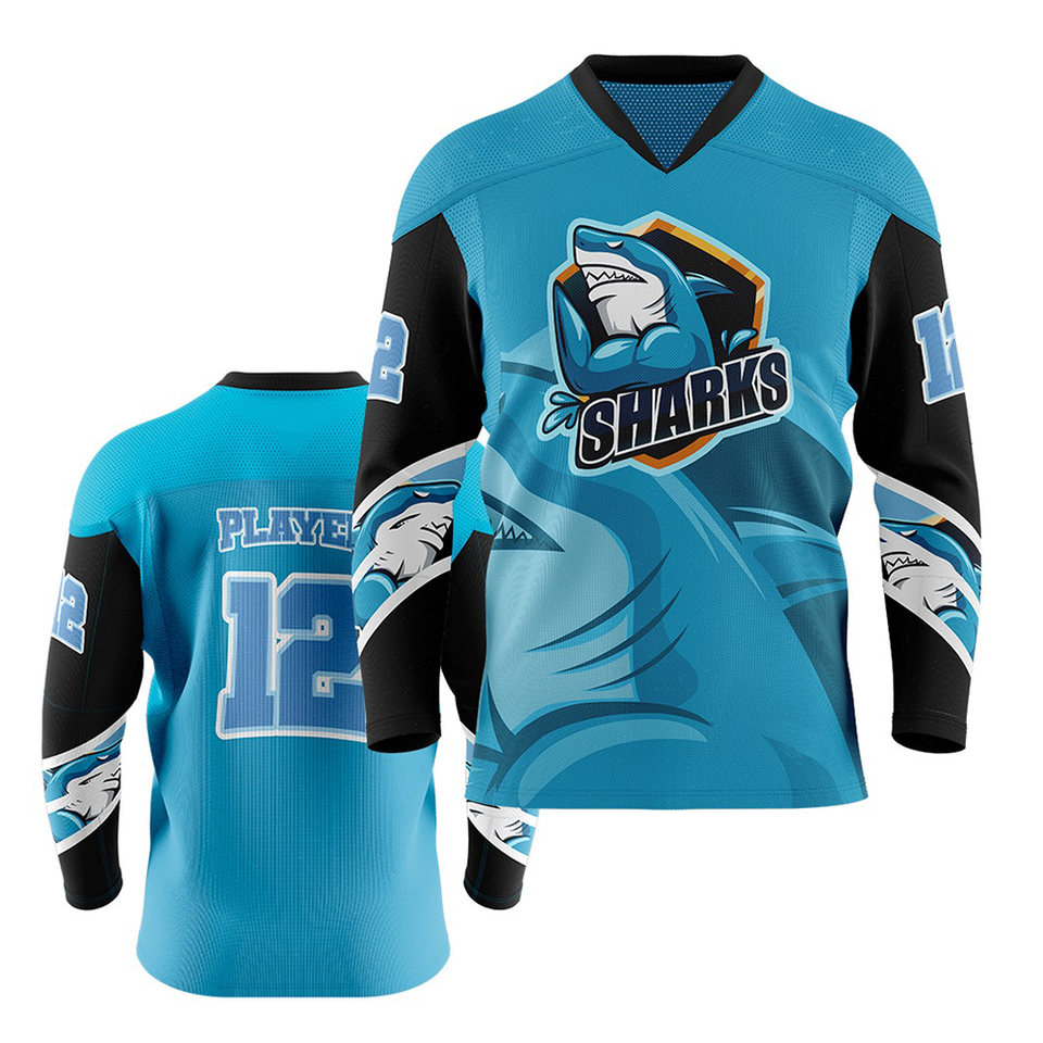 เสื้อฮ็อกกี้น้ำแข็งพิมพ์ลายซับลิเมตชุดทวิลชื่อและหมายเลขเครื่องแบบฮ็อกกี้น้ำแข็งออกแบบโลโก้ได้ตามต้องการ
