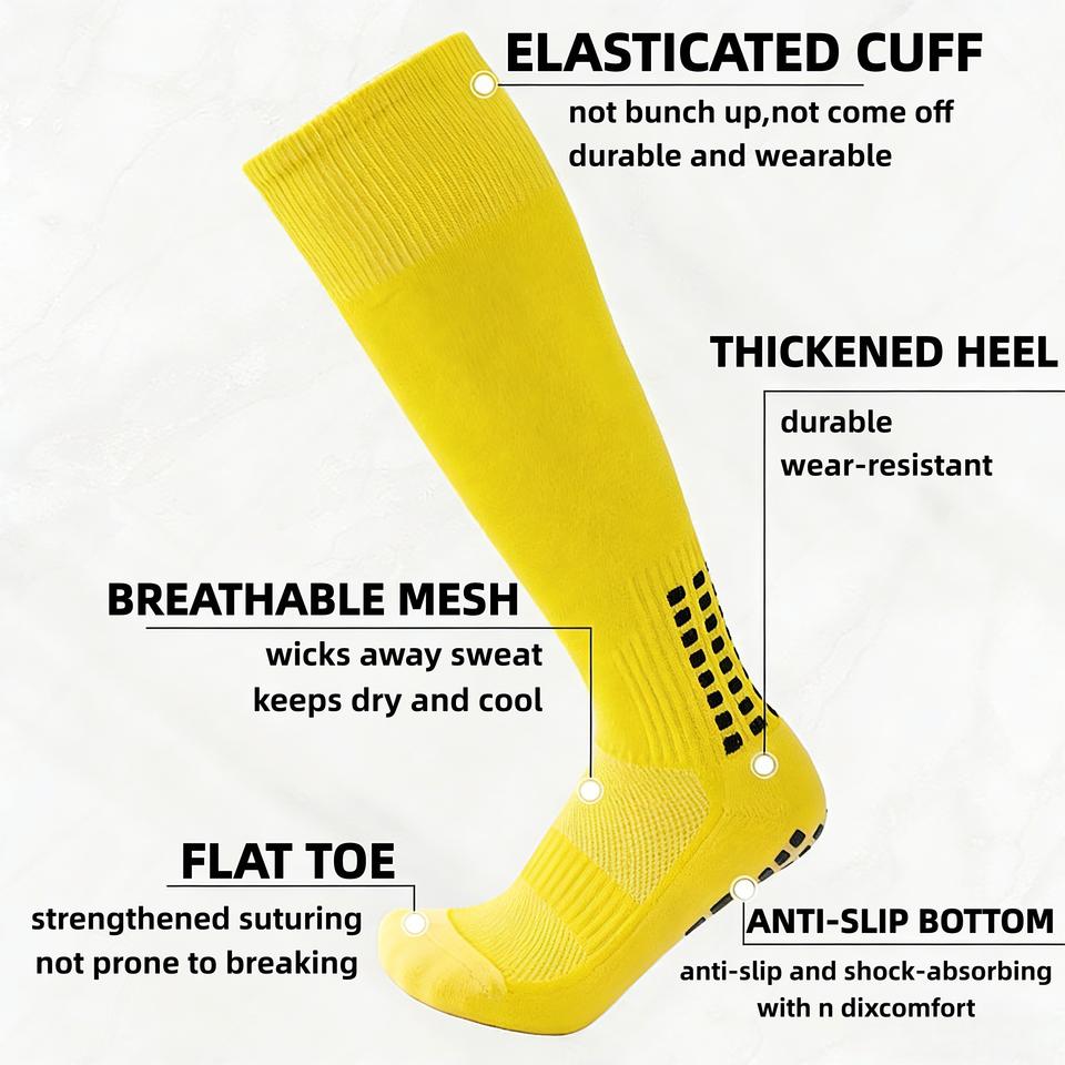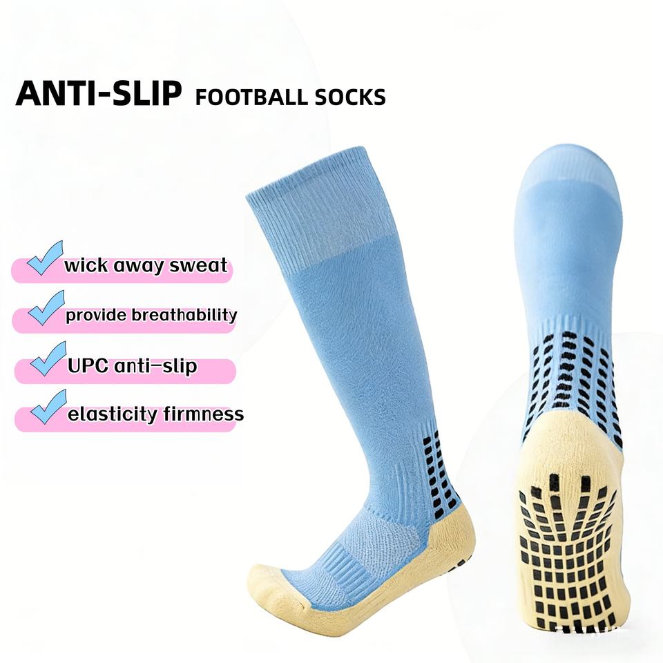 ถุงเท้าฟุตบอลกันลื่นแบบยาวถึงเข่า สำหรับฝึกซ้อมและเล่นกีฬา รับผลิตตามแบบ OEM พร้อมสกรีนโลโก้