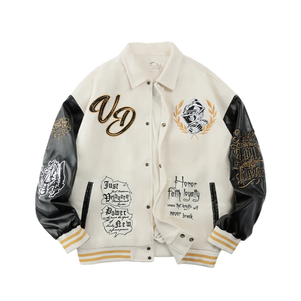 แจ็คเก็ตเบสบอลแบบมีปักลาย OEM สั่งทำโลโก้ได้ แจ็คเก็ตวาร์ซิตี้ปักลายสำหรับผู้ชาย แจ็คเก็ตบอมเบอร์สไตล์วินเทจ สตรีทแวร์ ฮิปฮอป