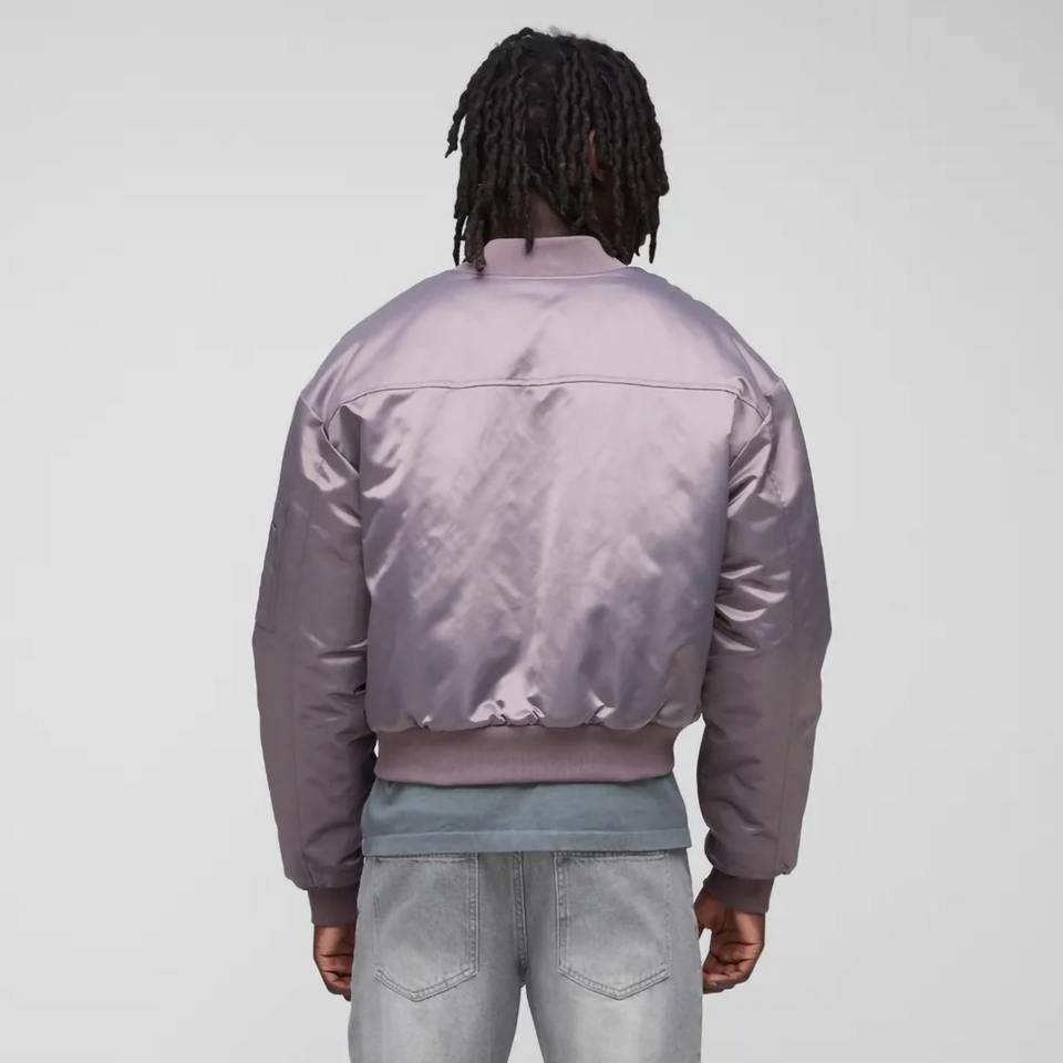 แจ็คเก็ตวาร์ซิตี้แบบมีซิป คอตั้ง น้ำหนักเบา ผ้าซาตินเงา ทรงบอมเบอร์ ตัดสั้น สไตล์วินด์เบรกเกอร์ สำหรับผู้ชาย รับทำโลโก้ OEM