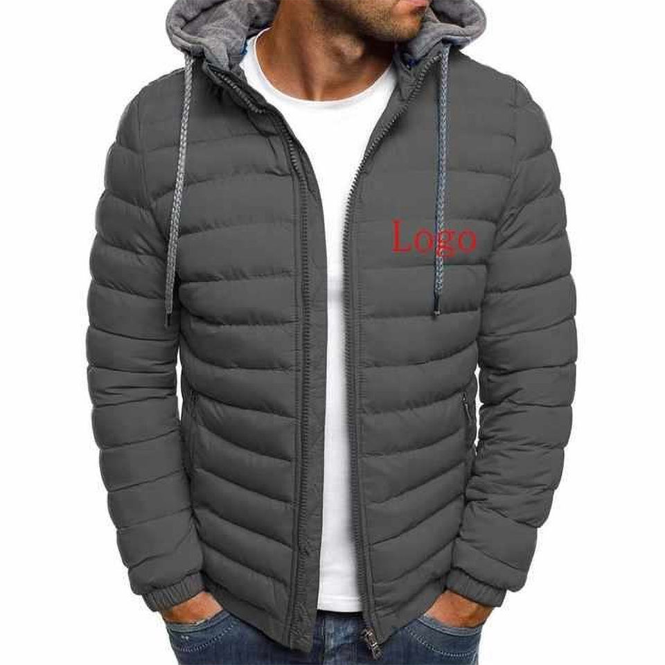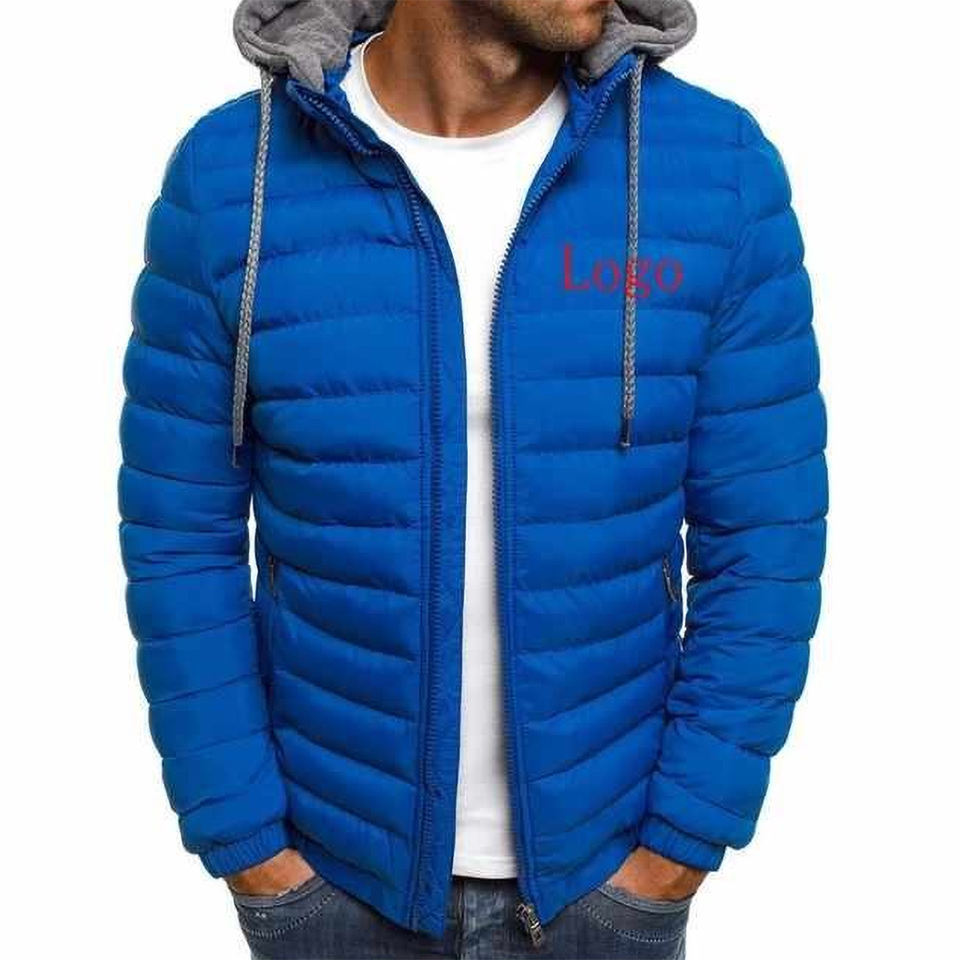 เสื้อแจ็คเก็ตพัฟเฟอร์บุผ้านวมสำหรับผู้ชาย แบบคอตั้งและมีฮู้ดสั่งทำได้ พร้อมโลโก้ OEM ผลิตตามสั่ง ขายส่งจำนวนมากสำหรับฤดูหนาว