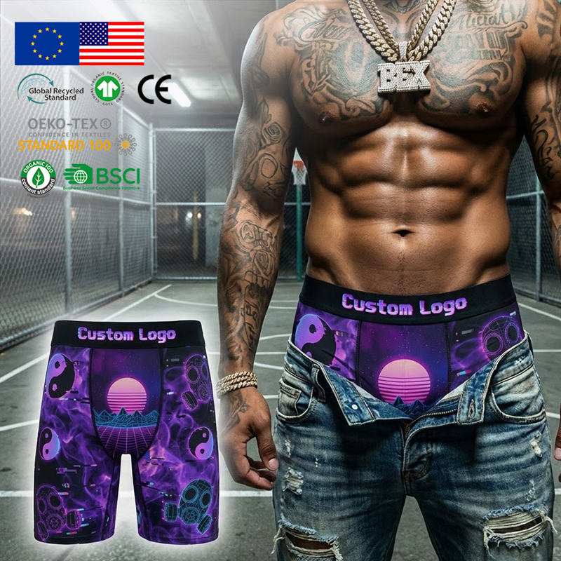 กางเกงในชาย OEM สกรีนโลโก้ตามสั่ง ลายโมเดิร์นเรโทร วัฟเฟิล ยินหยาง ผ้าโมดอลผสมสแปนเด็กซ์ ระบายอากาศ ป้องกันแบคทีเรีย ลดกลิ่นอับ
