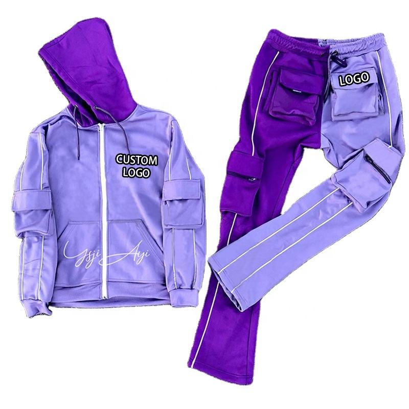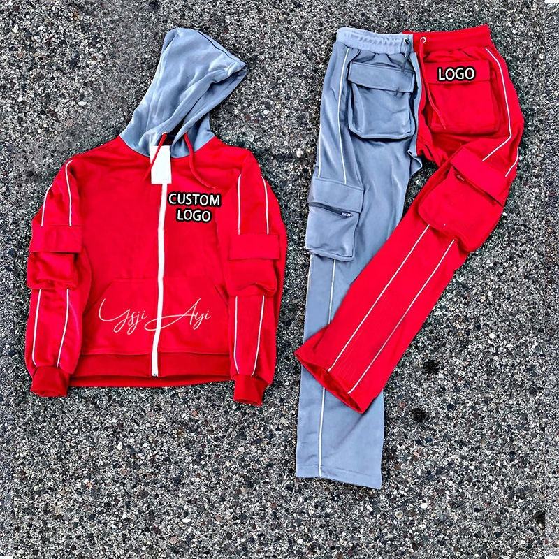 ชุดวอร์มกันหนาวของผู้ชายชุดวอร์มสีแบบเรียงซ้อนกันออกแบบโลโก้ได้ตามต้องการ