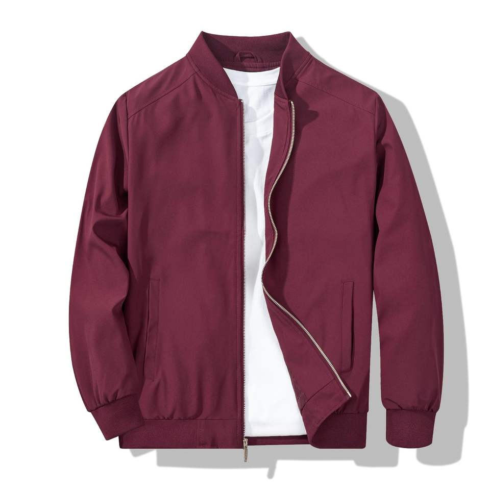 แจ็คเก็ตบอมเบอร์ผู้ชายแบบกันลมสำหรับฤดูหนาว พร้อมซิปปิด โลโก้ OEM แบบกำหนดเอง แขนยาว อุ่นสบาย