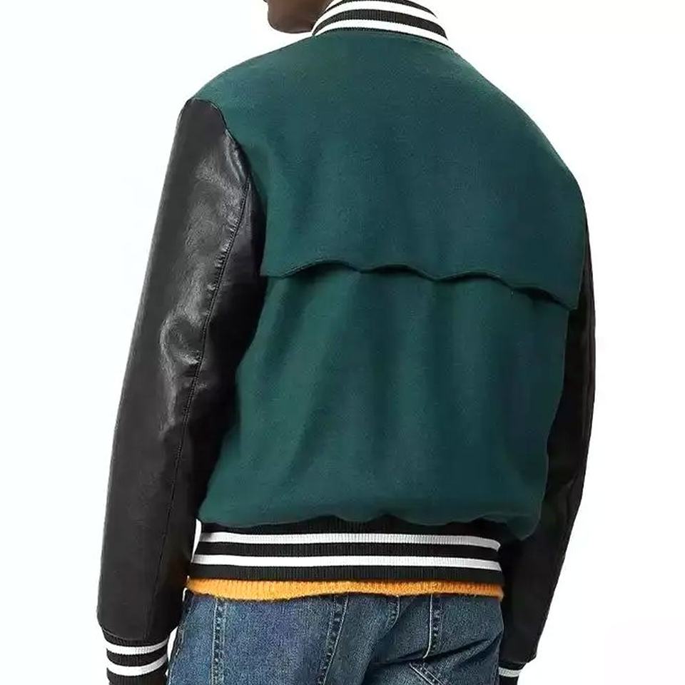 แจ็คเก็ตบอมเบอร์ขนแกะและโพลีเอสเตอร์สำหรับผู้ชายโลโก้ออกแบบได้ตามต้องการสำหรับฤดูหนาว