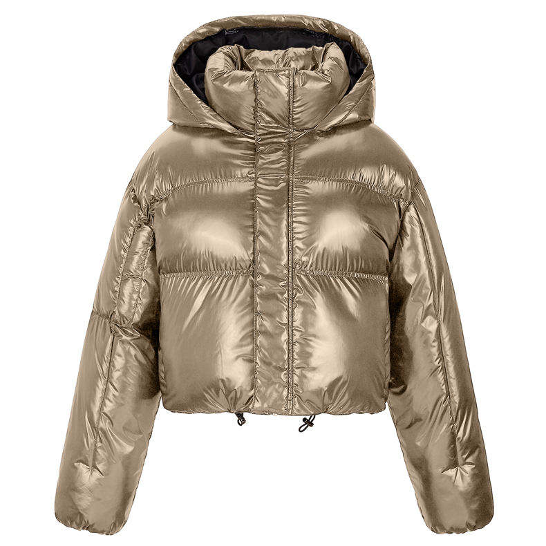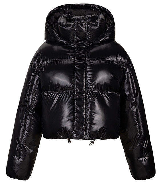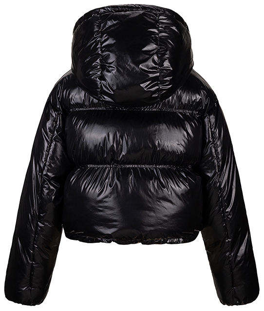 แจ็กเก็ตแบบพองสำหรับผู้หญิงเสื้อคลุมตัวยาวทรงพองสีดำพิมพ์ลายโลโก้ได้ตามต้องการ