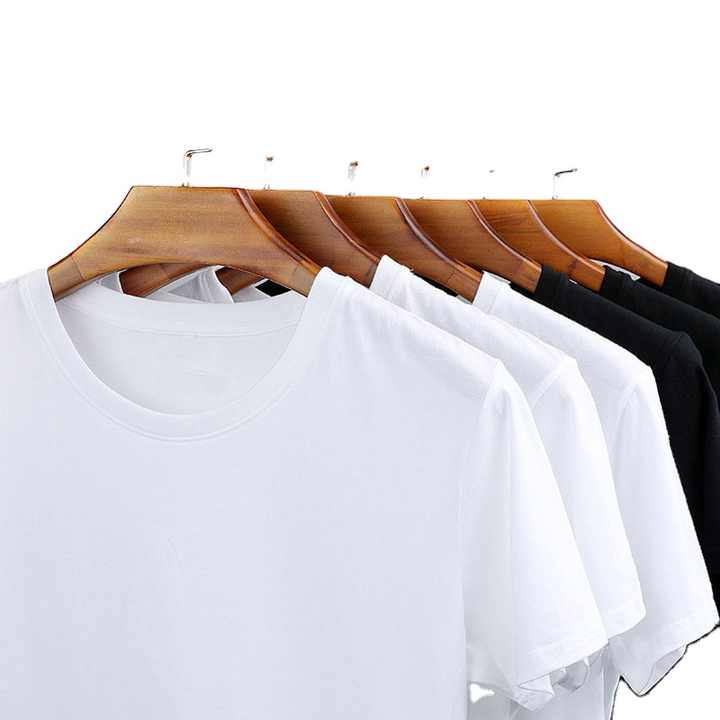 OEM เสื้อยืดลำลองสำหรับผู้ชายแบบพรีเมียมพิมพ์ลายปักโลโก้ออกแบบได้ตามต้องการเสื้อยืดแขนสั้นสีดำทำจากผ้าไหมน้ำแข็งผ้าฝ้ายว่างเปล่า