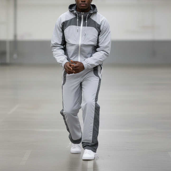 ชุดวอร์มกันลมแบบมีฮู้ดพิมพ์โลโก้ OEM ตามสั่งสำหรับฤดูหนาว ชุดเซ็ต 2 ชิ้น ขายส่ง ชุดวอร์มน้ำหนักเบาแบบปกติ
