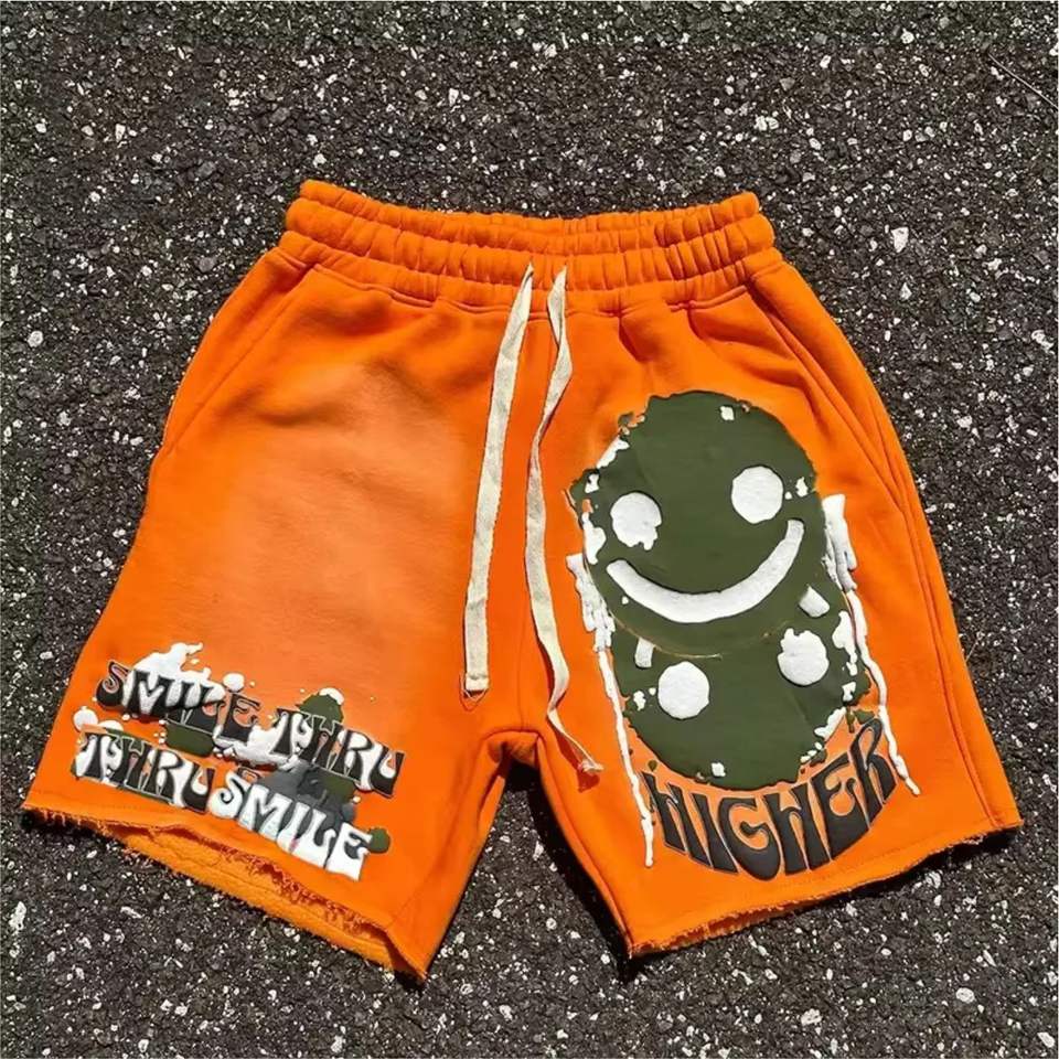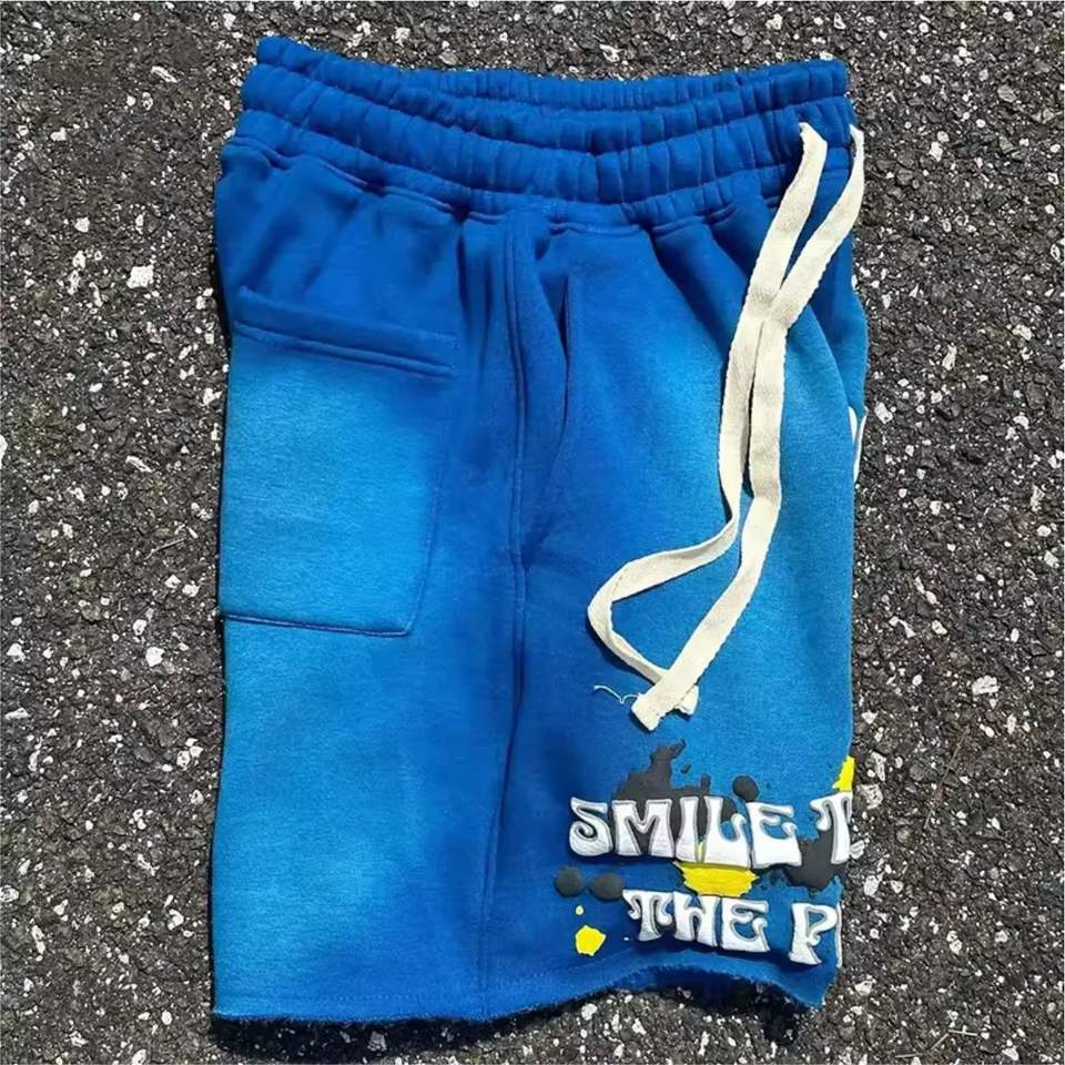 กางเกงขาสั้นผู้ชายผ้าฝ้ายแท้พิมพ์พัฟ3D ใส่วิ่งแบบวินเทจสำหรับใส่วิ่งทรงหลวมกรดซักแล้วซีดจางลงแดดออกแบบโลโก้ได้ตามต้องการ