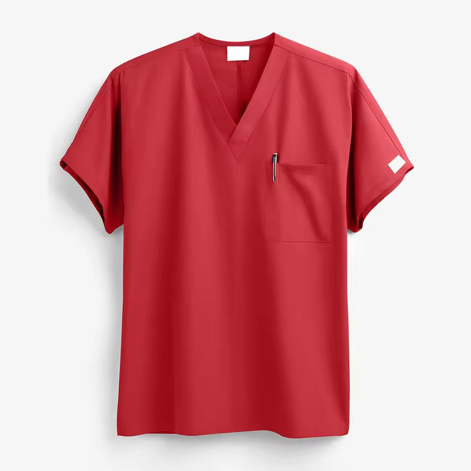 ชุดยูนิฟอร์มแพทย์แบบสั้นแขนสั้นผ้าแคนวาสเจอร์ซีย์สำหรับบุรุษและสตรี พิมพ์โลโก้ OEM ได้ตามต้องการ แห้งเร็ว ระบายอากาศได้ดี เหมาะสำหรับโรงพยาบาล