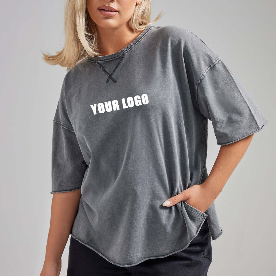 OEM Custom Logo Short Sleeve T-Shirt Breathable Vintage Washed Grey Plus Size Polyester/Cotton Women's Slim Fit 220g High
