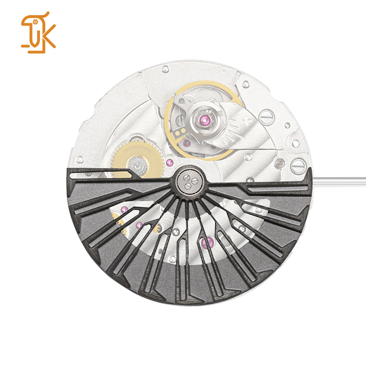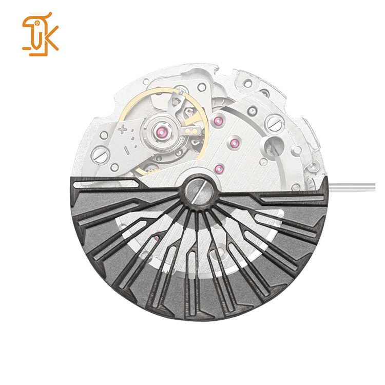 นาฬิกาลูกตุ้มอัตโนมัติแบบโรตารี่สีดำโครงกระดูกโลโก้งานตามสั่ง NH35ชิ้นส่วนโลหะที่มีความแม่นยำ8215 9015