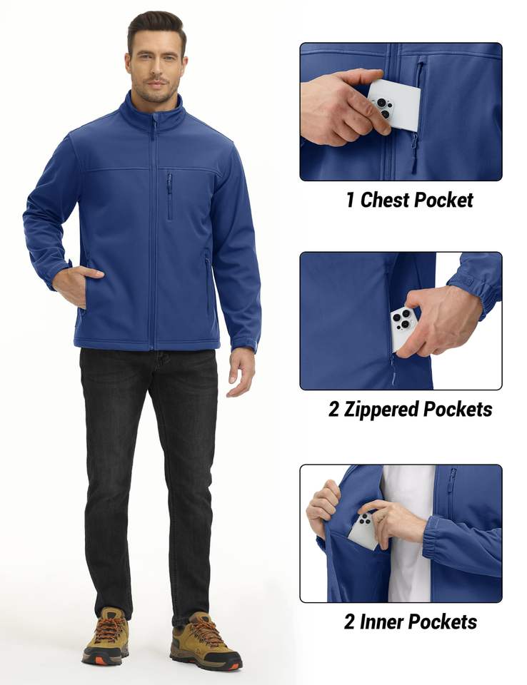 แจ็คเก็ตซอฟต์เชลล์แบบกำหนดเองสำหรับผู้ชาย กันน้ำและระบายอากาศได้ดี สไตล์ลำลองสำหรับฤดูหนาวและกิจกรรมกลางแจ้ง