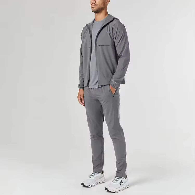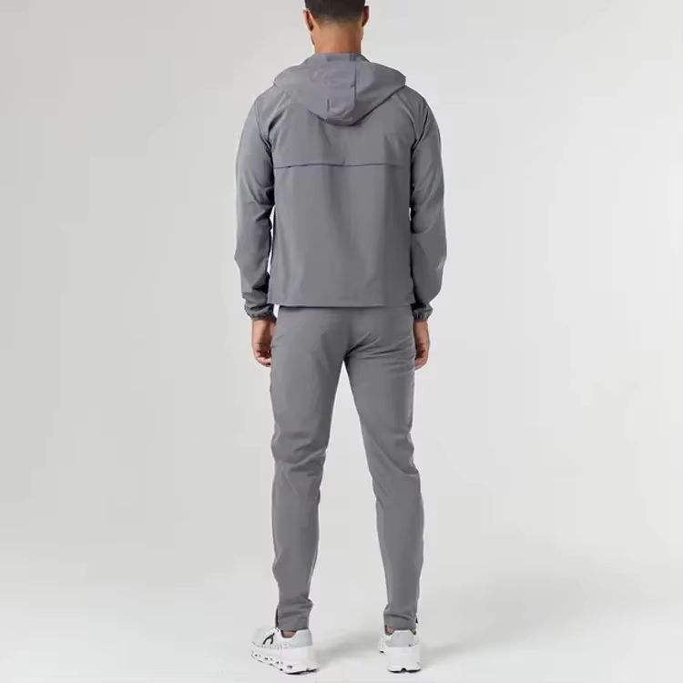 ชุดกีฬากันลมมีฮู้ดสำหรับทั้งชายและหญิงชุดวอร์มเล่นกีฬายิมฟิตเนสแบบระบายอากาศได้สำหรับฤดูใบไม้ผลิโลโก้ตามสั่ง