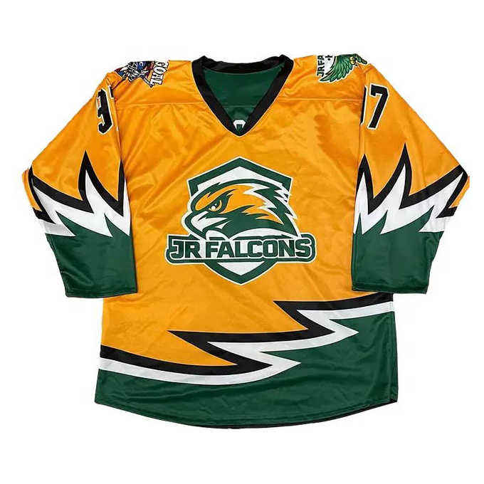 เสื้อฮอกกี้น้ำแข็งและชุดยูนิฟอร์มคุณภาพสูง โพลีเอสเตอร์ 100% พิมพ์ลายโลโก้ตามสั่งแบบ OEM