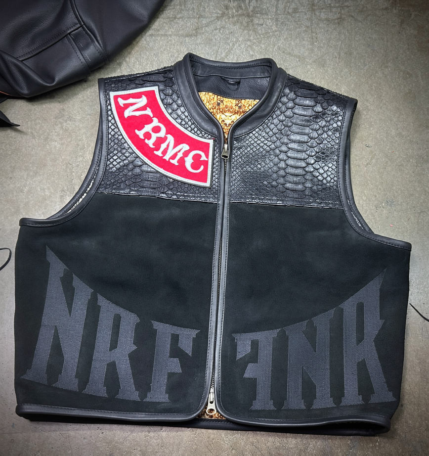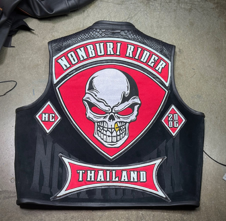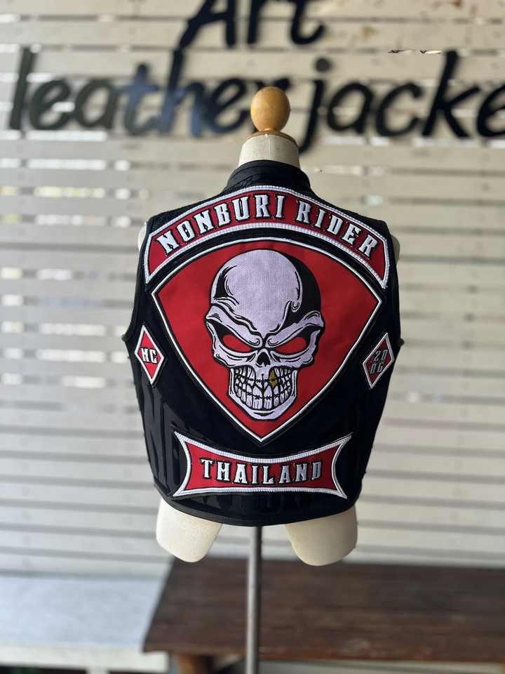 เสื้อกั๊กขี่มอเตอร์ไซค์หนังกลับแบบสั่งทำพร้อมโลโก้ OEM