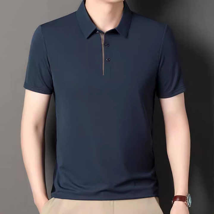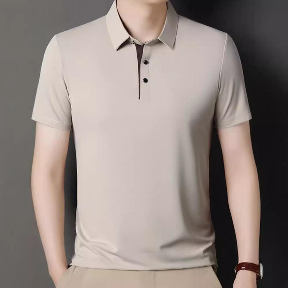 เสื้อโปโลผู้ชายแบบสวมหัวคอปกปานกลางสีทึบใหม่ฟรีโลโก้ฤดูร้อนกำหนดเอง