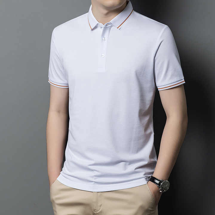 เสื้อยืดโปโลมีปกแบบลำลองสำหรับธุรกิจของผู้ชายเสื้อยืดบางเรียบง่ายสไตล์เกาหลีออกแบบโลโก้ฤดูร้อนได้ตามต้องการ