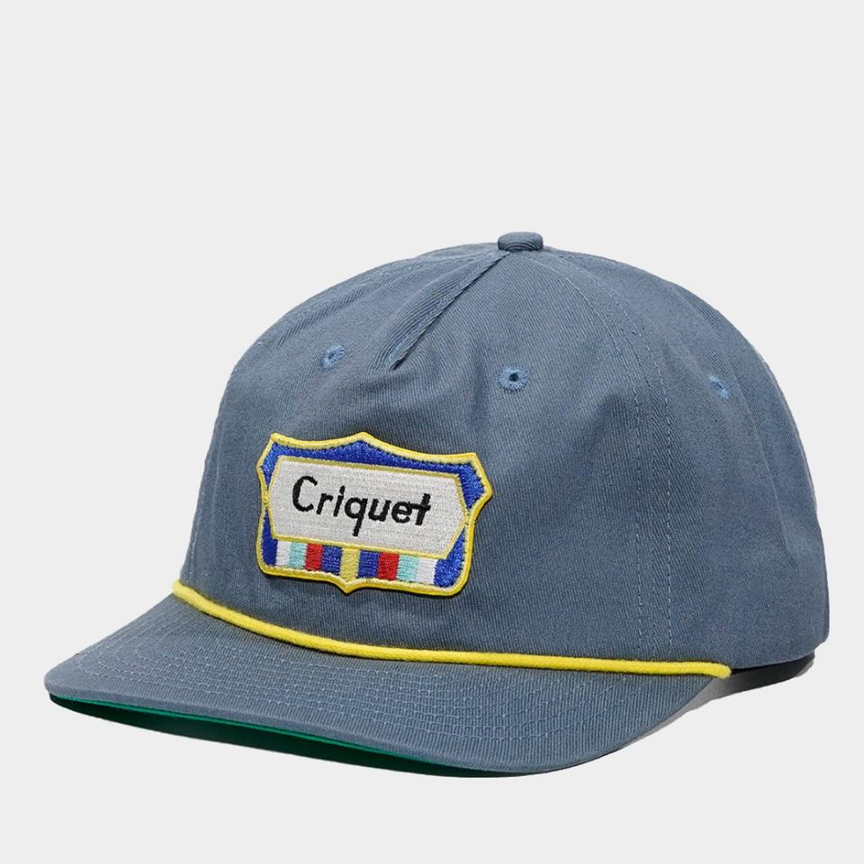 หมวกแก๊ปทรง 5 แฉก แบบไม่มีโครง ปักลายผ้าฝ้ายสีน้ำเงิน พร้อมเชือก ปรับขนาดได้ ปีกหมวกโค้งเล็กน้อย รับทำโลโก้ตามสั่ง (OEM)