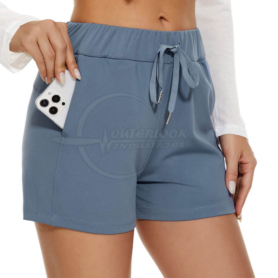 กางเกงขาสั้นเอวสูงของผู้หญิงกางเกงขาสั้นระบายอากาศได้ดีมีโลโก้ตามสั่ง