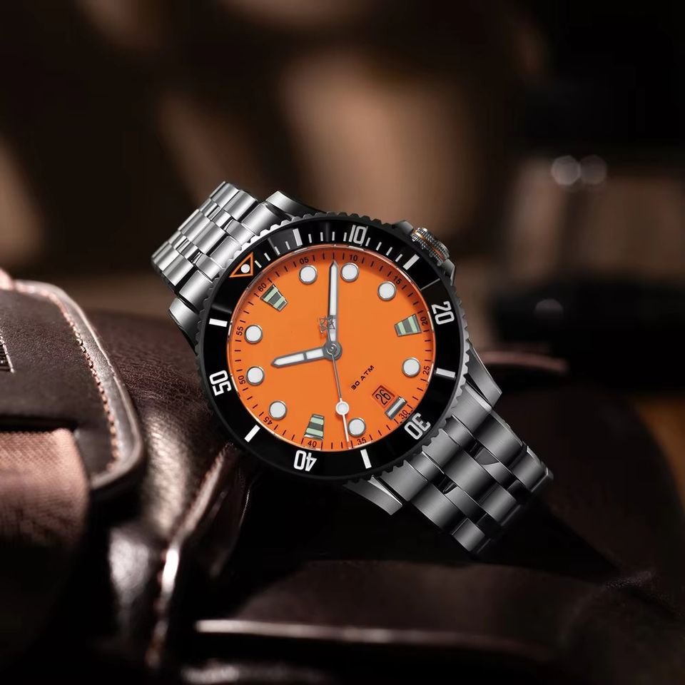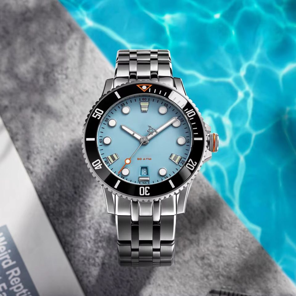 นาฬิกาสแตนเลสสำหรับผู้ชายนาฬิกาดำน้ำอัตโนมัติ NH35A 40มม. ตัวเรือนสแตนเลสแบบกด120หรูหรางานตามสั่ง