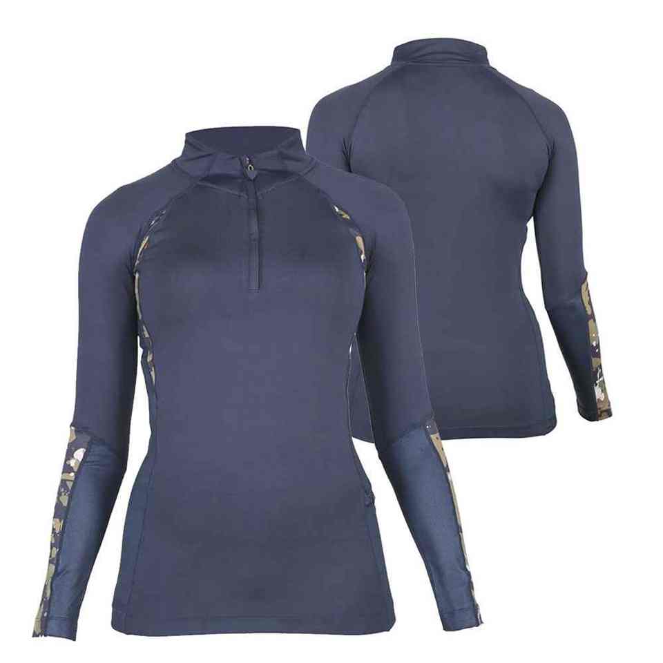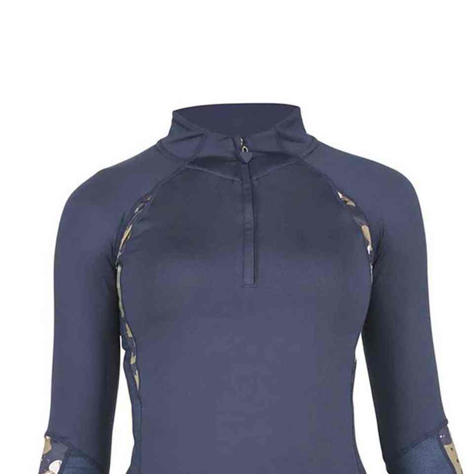 เสื้อเบสเลเยอร์สำหรับขี่ม้าแบบสั่งทำพิเศษสำหรับผู้หญิง ทรงเข้ารูป ซิปติดกระดุม ผลิตจากผ้าสแปนเด็กซ์และไนลอน สำหรับกีฬาขี่ม้า