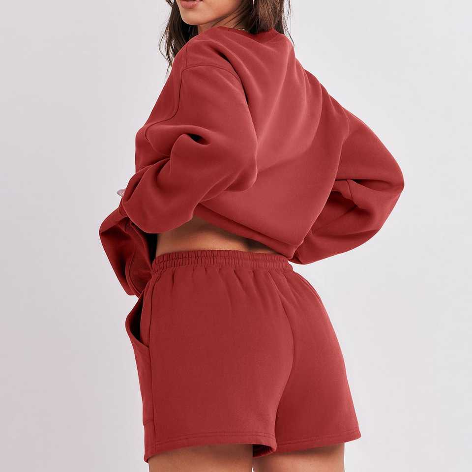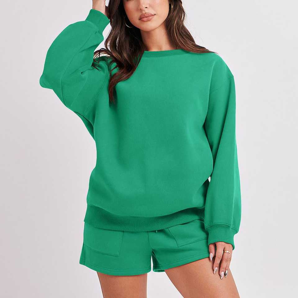 ชุดวอร์มผ้าฟลีซถักบางเข่าสีพื้นชุดวอร์ม2025ใส่สบาย