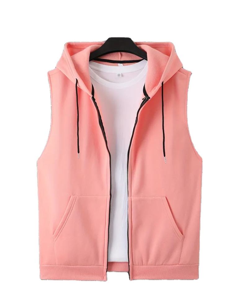 เสื้อกั๊กผ้าคอตตอนผสมโพลีเอสเตอร์แบบสั่งทำ OEM สำหรับผู้ชาย สีพื้น ระบายอากาศได้ดี เหมาะสำหรับใส่เป็นเสื้อคลุมช่วงฤดูใบไม้ผลิ เสื้อกล้ามมีฮู้ด