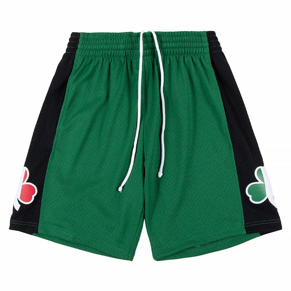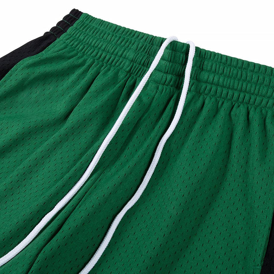 กางเกงขาสั้นบาสเก็ตบอลสำหรับผู้ชายสีเขียว/ดำแผงด้านข้างตาข่ายแบบทึบออกแบบได้ตามต้องการ