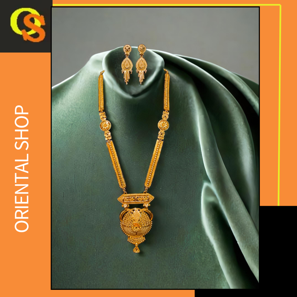 ชุดต่างหูสร้อยคอทำเอง OEM พร้อมสร้อยคอชุบทอง22K ชุดเครื่องประดับชุดต่างหูสร้อยคอสำหรับผู้หญิง