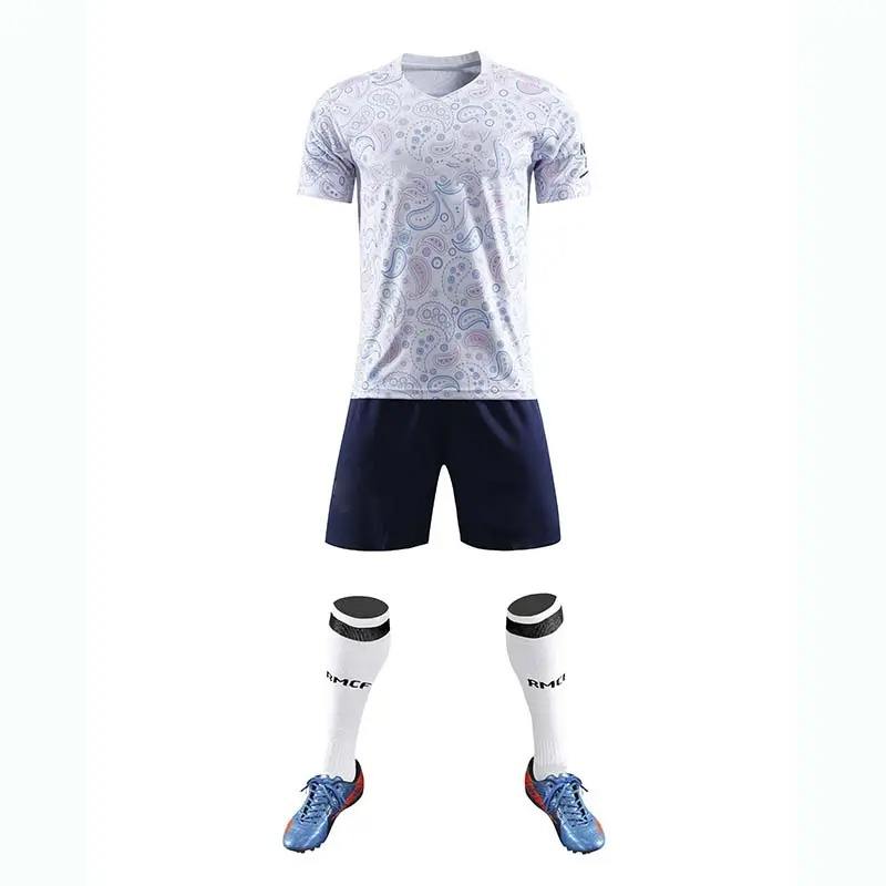 ชุดเสื้อเจอร์ซีย์ฟุตบอลชุดเสื้อเจอร์ซีย์เสื้อฟุตบอลลายทางสีเรียบออกแบบได้ตามต้องการ