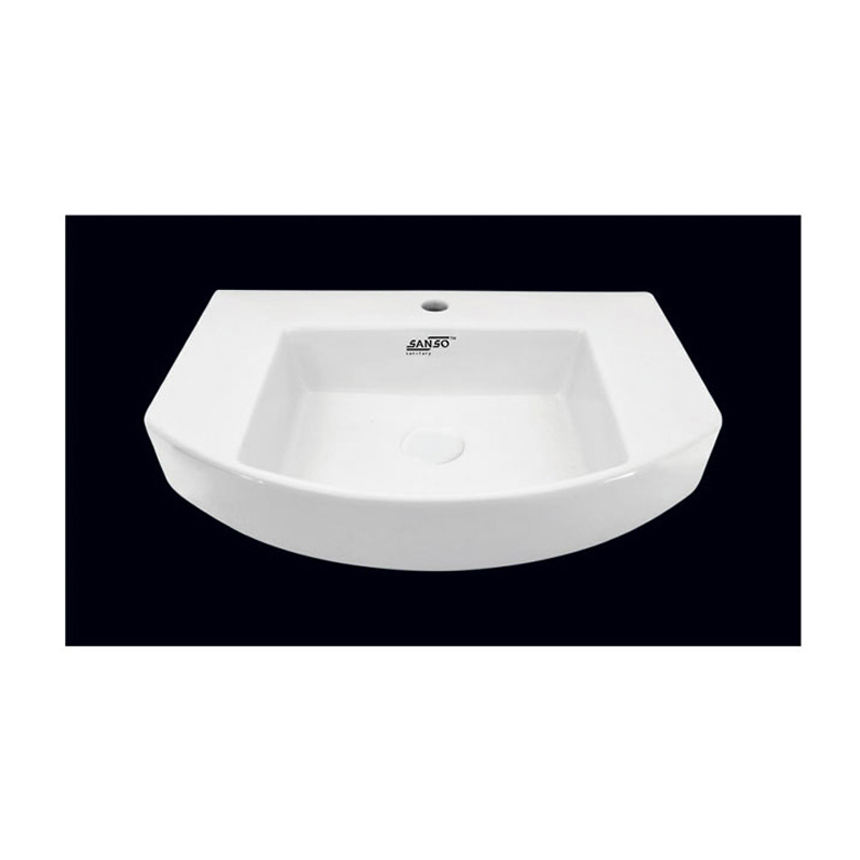 อ่างล้างหน้าเซรามิกสีขาวก๊อกน้ำหลุมเดียวสำหรับโรงแรมอ่างล้างมือผลิตตามสั่ง