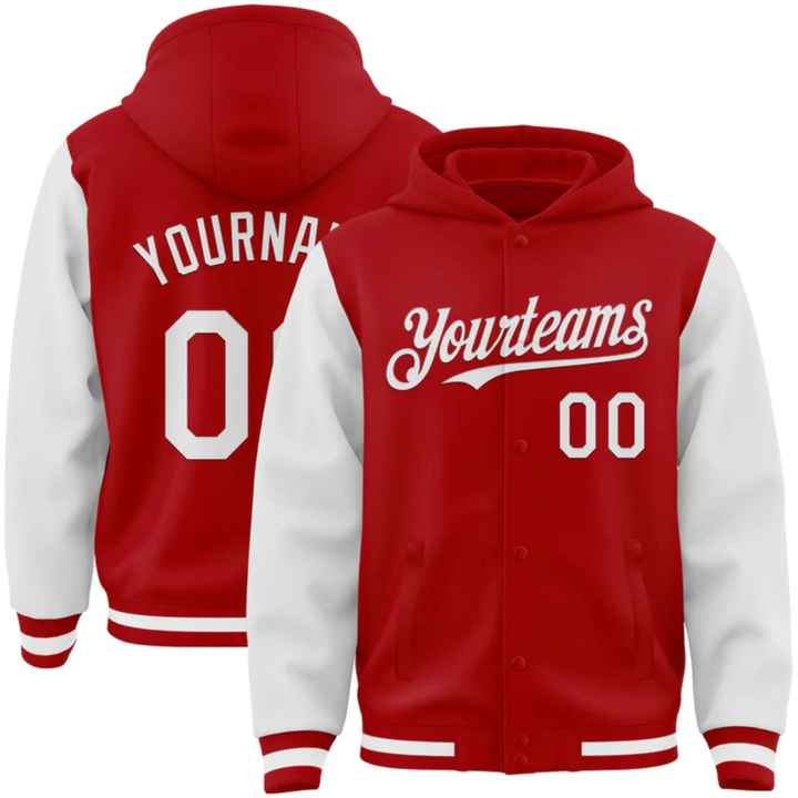 แจ็กเก็ตมีฮู้ดสองโทนสีขาวแดงแบบเต็มแผ่นงาน OEM ออกแบบได้ตามต้องการ