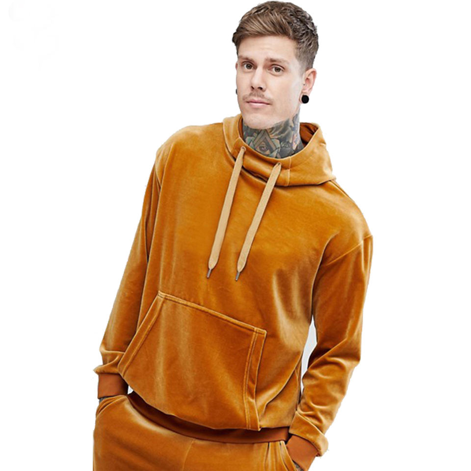 ชุดวอร์มกำมะหยี่แบบสั่งทำ OEM 2 ชิ้น เสื้อฮู้ดและกางเกงขายาวทรงหลวมสำหรับผู้ชาย