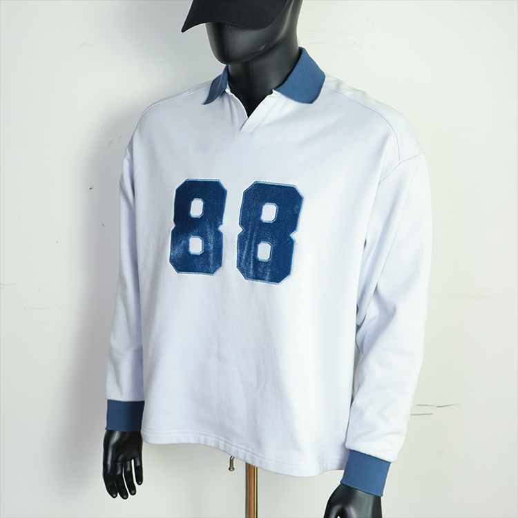 เสื้อโปโลผู้ชายแบบโอเวอร์ไซส์ผ้าฝ้าย OEM แบบกำหนดเอง เสื้อสเวตเชิร์ตปักลาย เสื้อโปโลรักบี้ผู้ชาย เสื้อยืดโปโลรักบี้สำหรับผู้ชาย