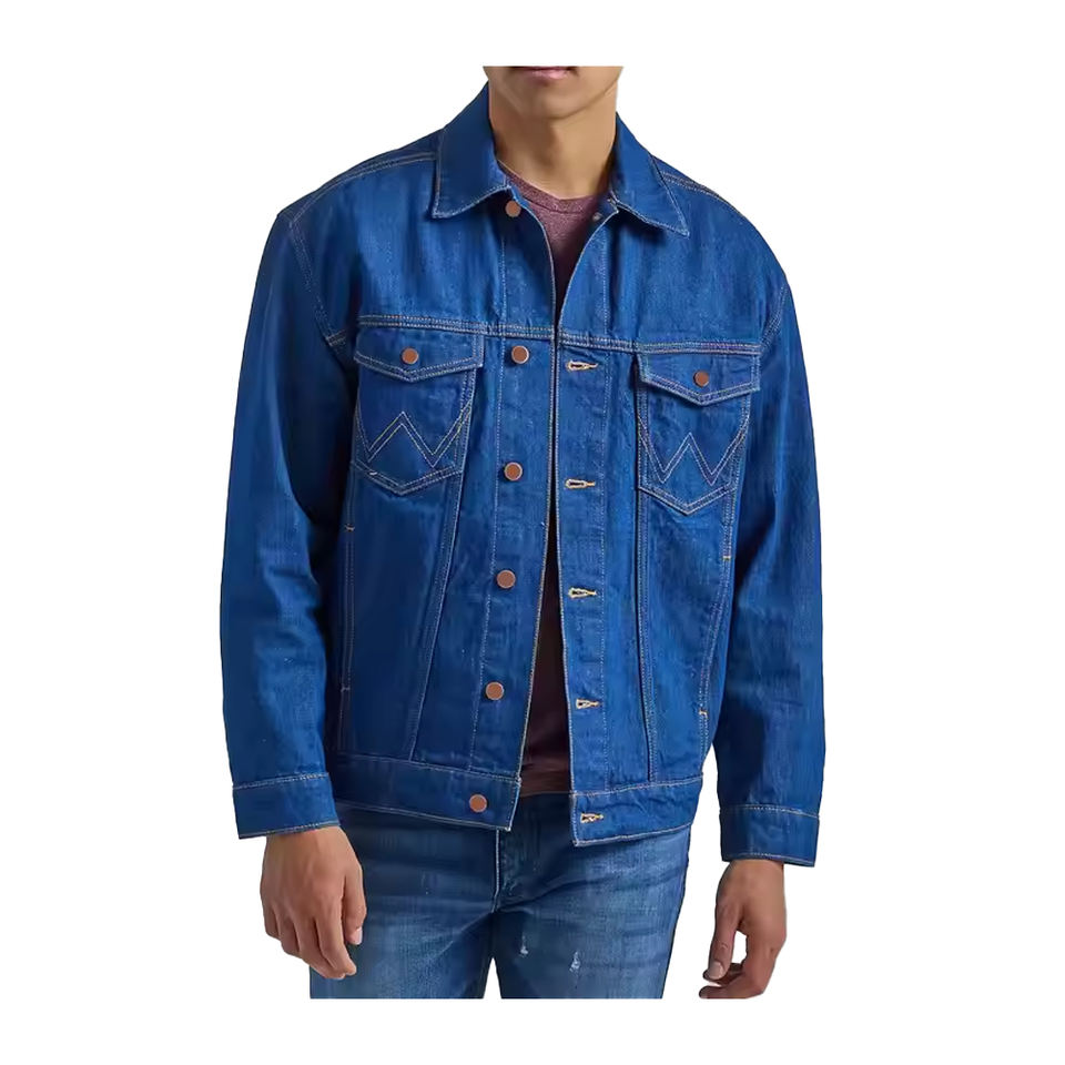 แจ็คเก็ตยีนส์มีกระดุมแบบคลาสสิกสำหรับผู้ชายเสื้อแจ็กเก็ตยีนส์มีโลโก้ทีมสำหรับงานอีเวนต์พนักงานธุรกิจหรือลูกเรือนักศึกษา