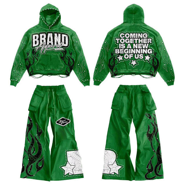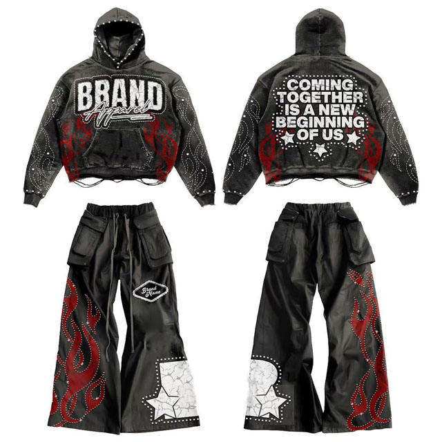 ชุดวอร์มผู้ชายผ้าคอตตอนหนานุ่มสไตล์วินเทจแบบ OEM พร้อมซิปประดับคริสตัลและกางเกงจ็อกเกอร์เข้าชุดสไตล์สตรีทแวร์