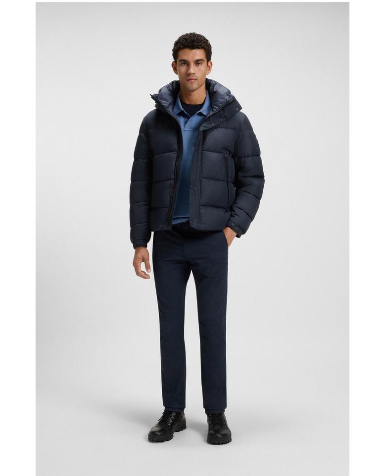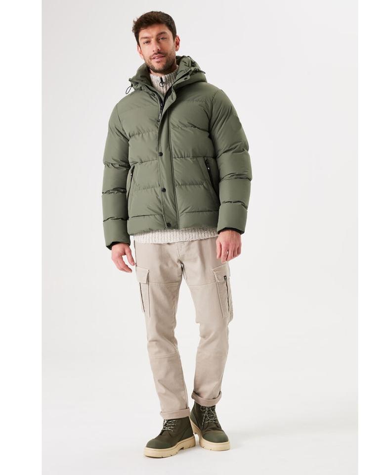 OEM เสื้อโค้ทบุนวมสำหรับผู้ชายแจ็คเก็ตทรงพองมีฮู้ดซิปเต็มรูปแบบสีทึบแจ็คเก็ตปักกระเป๋าข้าง