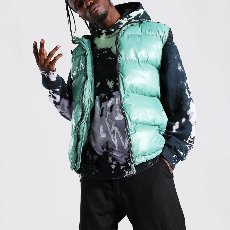เสื้อแจ็คเก็ตบุหนานุ่มแบบมีฮู้ดและแขนถอดได้สำหรับผู้ชาย สไตล์ลำลอง ผลิตตามแบบ OEM ให้ความอบอุ่นในฤดูหนาว