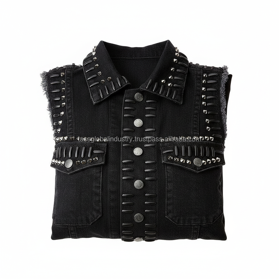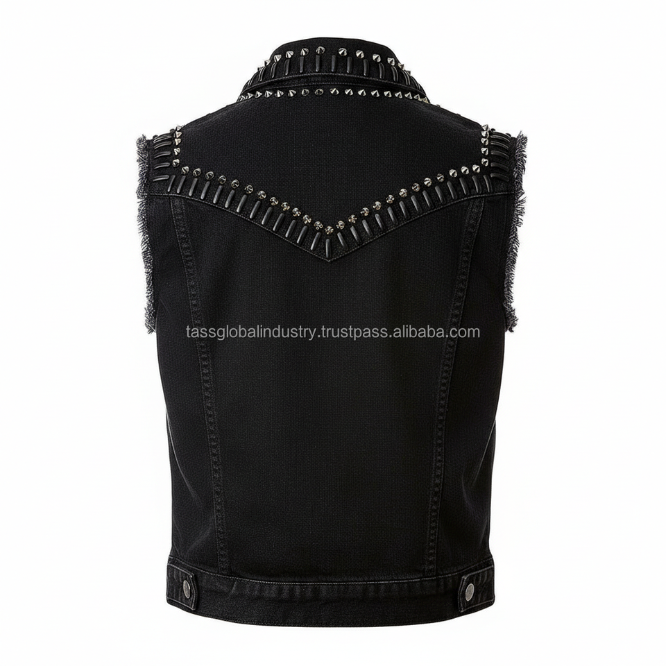 เสื้อกั๊กยีนส์สีดำแบบไม่มีแขนสำหรับผู้ชาย ตัดเย็บแบบ OEM ขอบดิบ ทรงเข้ารูป สไตล์ลำลอง ซัมเมอร์ เสื้อคลุมลำลอง มีกระเป๋าคู่