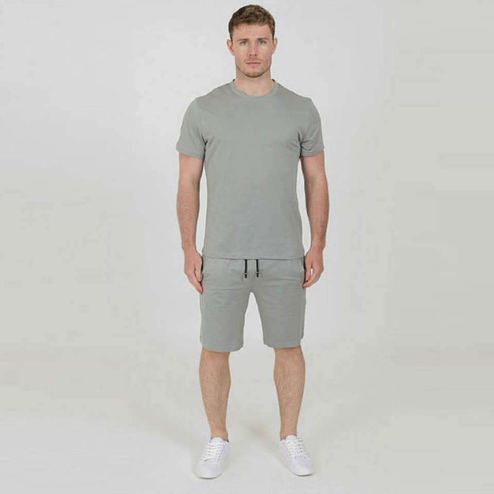 ชุดกางเกงขาสั้นแขนสั้นผ้าฝ้าย2ชิ้นสำหรับผู้ชายชุดเสื้อยืดและชุดสั้นสำหรับฤดูร้อนงาน OEM ตามสั่ง