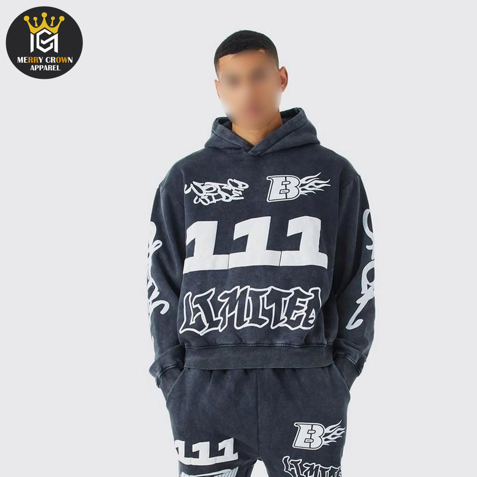 ชุดกีฬากันหนาวสำหรับผู้ชายชุดวอร์มแนวสตรีทแวร์เฮฟวีเวตชุดวอร์มปักลายวินเทจ็อกเกอร์ซักได้แนววินเทจและชุดมีฮู้ด