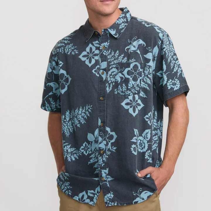 เสื้อเชิ้ตอโลฮาผู้ชายแบบสั่งทำพิเศษ ลายพิมพ์หรูหรา ปกเสื้อระบายอากาศได้ดี เนื้อผ้านุ่ม คุณภาพสูง ทำจากผ้าลินิน